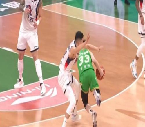 陈林坚防守搂倒王岚嵚被吹违体犯规、